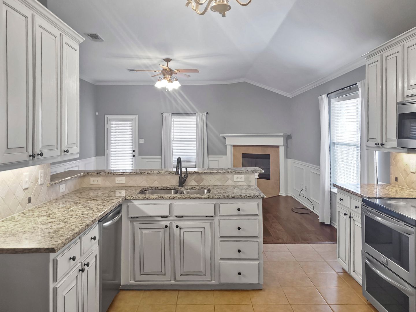 This charming home won’t last long! The open, light-filled family room and kitchen are a must-see. The exterior entryway welcomes you with a grand covered patio, perfect for relaxing or entertaining. Inside, the home features soaring ceilings, elegant chandeliers, hardwood flooring, crown molding, picture-frame paneling, custom closets, and a cozy gas log fireplace.