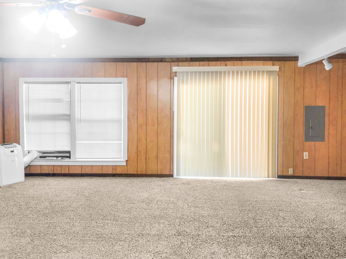 This spacious 2-story home offers a large living room that flows into the dining and kitchen area. The converted garage can serve as a game room, office, or second living room. The kitchen features an electric stove/oven & dishwasher. The living room boasts vaulted ceilings, a wood-burning fireplace & there is a half bathroom on the 1st floor for convenience.